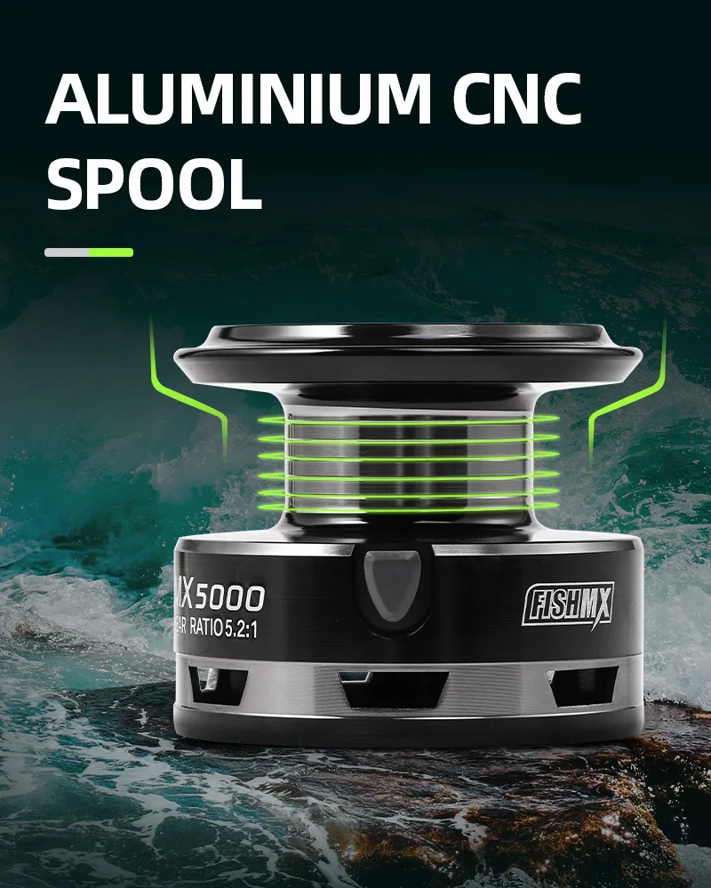 • Full Metal Spool Grip: The full metal spool grip provides a sturdy and durable hold on the fishing line, ensuring that it doesn't slip or break during use.